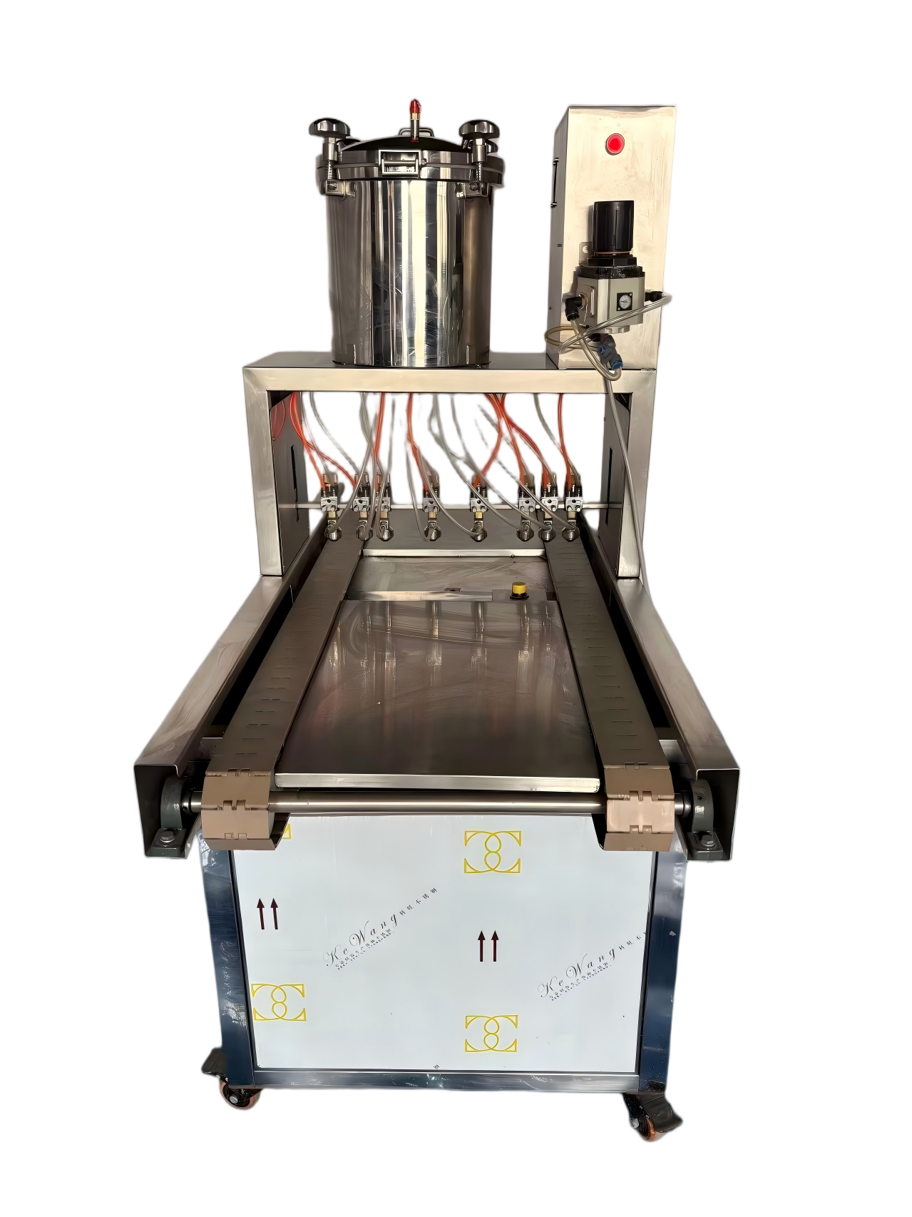 Application: Spray diameter 0.5CM-3CM. Spray shine, gloss, and glaze, baking oils, egg wash, icing, syrups, cream, and chocolate onto gummies and candies